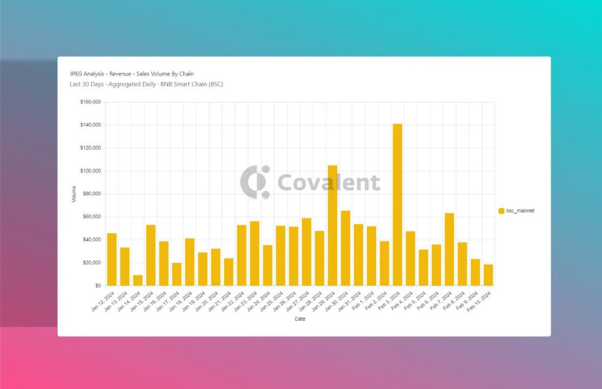 Analyzing NFT sales volume using JPEG analysis model on #BinanceSmartChain in the last 30 days using @Increment_HQ which allows us to have accurate data to improve our marketing strategies for users