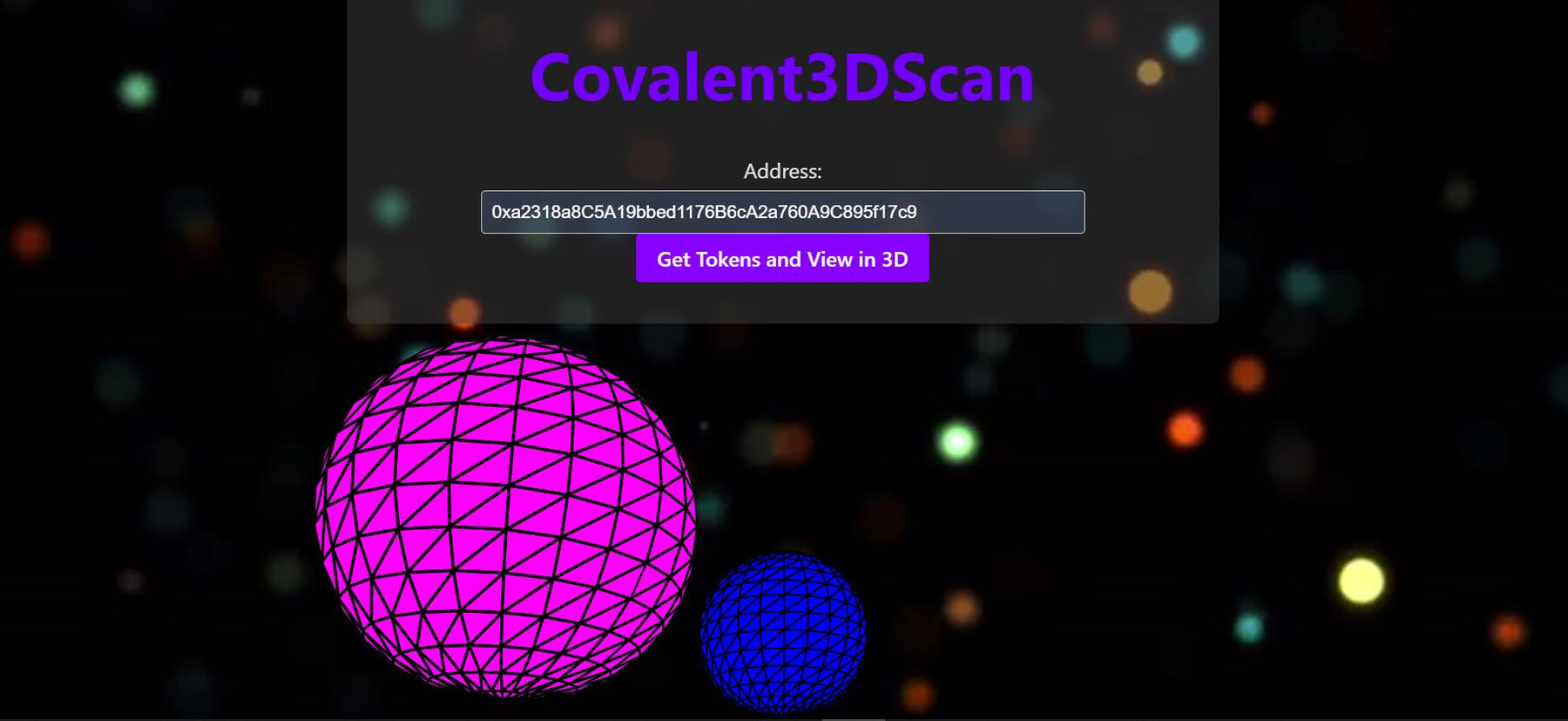 Create an application using React, Covalent Api and Ps.js to create a Fabulous 3D Scan that allows us to visualize the number of tokens that each wallet has through a 3D graph